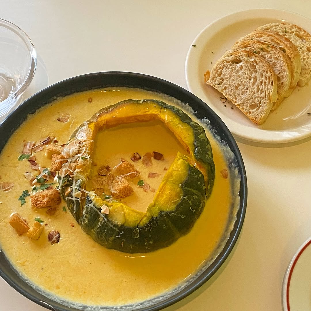 먼저, 오브셀라의 시그니처 메뉴라고 할 수 있는 통 단호박 스프! 🎃